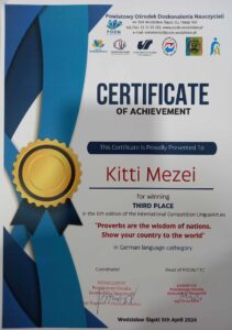 Német nyelv kategóriában Mezei Kitti Lia 11. D III. helyen végzett, Korpics Szonja Dele 11.D orosz nyelv kategóriában különdíjban részesült.