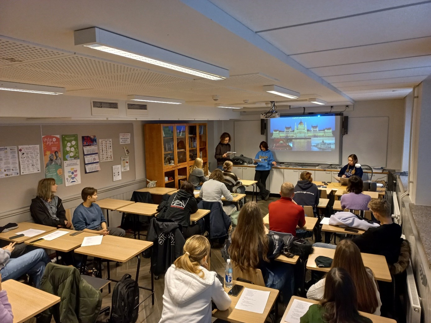 Kiutazásunkat hosszas előkészületek előzték meg, melyek tulajdonképpen már a 2022/2023-mas tanévben megkezdődtek. 2023 áprilisában Kelet-Finnország 3 iskolájából 50 diák látogatott el gimnáziumunkba. Most a mi iskolánk diákjain volt a sor, akik nemcsak Finnországgal ismerkedhettek meg, de lehetőségük adódott elmerülni az orosz kultúra örökségével Helsinkiben és Lappeenrantában. Talán egyik diákunk sem gondolta volna, hogy ennyi orosz kultúrához köthető programon vehet majd részt Finnországban, de arra pedig végképp nem számított senki, hogy minden napra ér minket valamilyen magyar vonatkozású meglepetés. Voltunk a Helsinki Egyetem Finnugor Tanszékén, ahol magyarul tanuló hallgatókkal ismerkedtünk meg. A legelső „munkanapunkon” vendégül láttak minket egy finn-orosz iskolában, ami elénk tárt egy elképesztően modern, diákközpontú XXI. századi iskolát és oktatási rendszert. Másnap a Szentháromság Templomban találkoztunk egy ortodox pappal, aki megismertetett minket a pravoszláv egyház alapjaival és tanításaival. Ezután elmentünk a Finn-Orosz Társasághoz, melynek munkatársai teával és édességekkel fogadtak bennünket. Rendkívül tanulságos és sok szempontból megrendítő beszélgetés zajlott közöttük és diákjaink között.