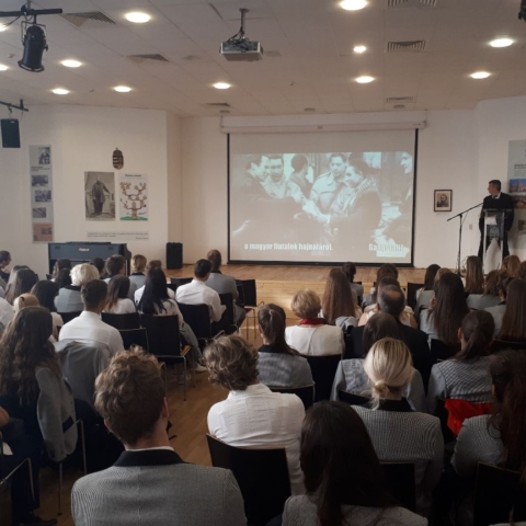 Az idei tanévben, az 1956. októberi 23-i forradalomra Intézményünk évfolyamai közül három, rendhagyó történelem órák keretén belül emlékezett meg. A diákok betekintést nyerhettek az 50-es évek mindennapjaiba, és személyes történeteken keresztül azonosulhattak érzelmileg is a forradalmárok hősies helytállásával. A rendhagyó történelem órák elején iskolánk néptánctanára, Lengyel Szabolcs adott elő partnerével színvonalas táncprodukciót.