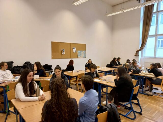 A Projektnap keretében a 9.Kny évfolyam diákjai Nyelvparádén vettek rész, ahol országismereti kvízfeladatok, játékos szótanulás, interaktív feladatok színesítették a nyelvi órákat. Gimnáziumunk profiljához igazodva idén is felsorakozott az összes idegen nyelv – angol, német, francia, spanyol, olasz, orosz, japán és kínai – változatos programot kínálva a másodnyelv-választás előtt álló diákok számára.